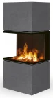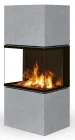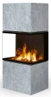 Designový elektrický krb Romotop s trojstranným prosklením a obložením z betonu.