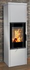 Krbová kamna Haas+Sohn se stříbrnými dvířky a externím přívodem vzduchu.